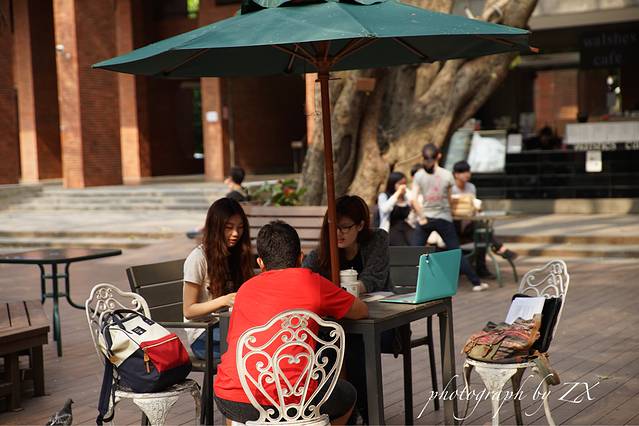 从打狗领事馆下来就是中山大学的正门,步行大概五分钟就可以看到学校的体育场,和教学楼