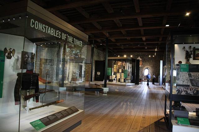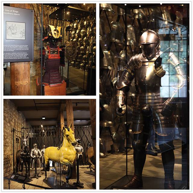 右边与珍宝馆相连的建筑里收藏着中世纪以来各个时代的兵器和军装,现在才知道城堡里有长达5英尺的巨剑,是稀世珍品,可惜没看到,也可能看到了也不知道。雨中长长的队伍是等着参观珍宝馆的。
