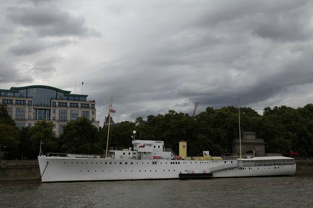 在博物馆一侧的广场上,贝尔法斯特人用灯光与钢柱标出了泰坦尼克号当初被建造的位置。不远处的干船坞中,一长溜枕木据说就是泰坦尼克号离开贝尔法斯特前做最后检修时所使用的原物。由于时间关系,我们没有参观博物馆内部。