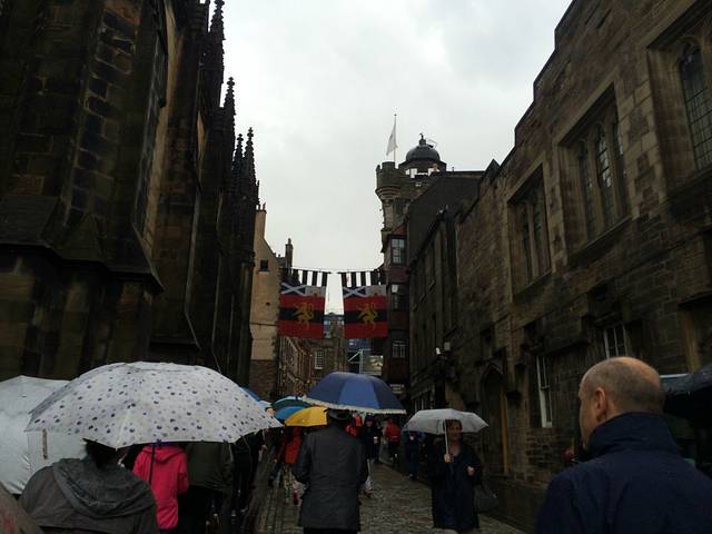 皇家英里大道是爱丁堡老城的中心大道,这条大街始于爱丁堡城堡,终于圣十字架宫,两旁小巷交错,构成了旧城的骨架。圆石铺成的地面早被磨得发亮,大道边的建筑古朴雄壮,充满历史气息。每天下午都有身着苏格兰裙的街头艺人吹奏风笛,更时时提醒着游客身在苏格兰古老的中心。