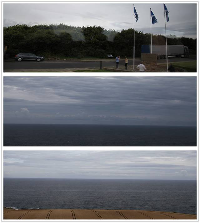 上午约11:50进入苏格兰,大巴沿北海海岸线行驶,突然看到海,略有些激动。最上面那张照片上的旗帜已是苏格兰国旗。