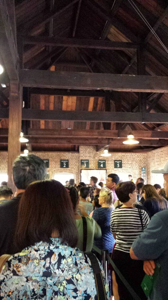 所有车辆排队等待上船。幸而车辆可以上船,大家就躲在车上不敢下去了。