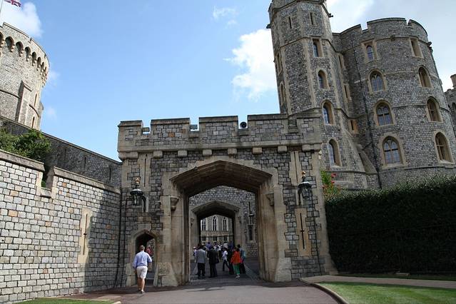 温莎城堡分上区、中区、下区,我们好像是从中区进入城堡。