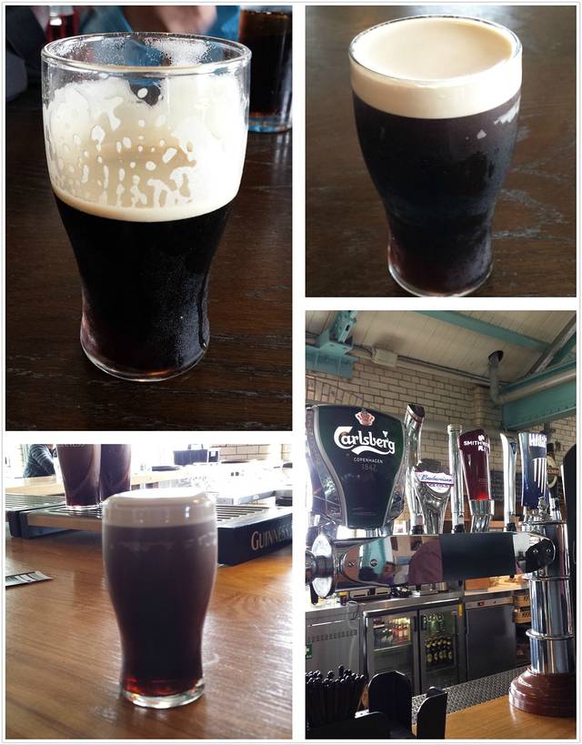 凭手中的参观券可以领一杯黑啤,有大小杯可选,也可以喝没有酒精的饮料。面对如此诱人的啤酒泡泡,拒绝是会后悔的,再说就要结束这次旅行了,再好好享受一次吧。冰爽的黑啤!!