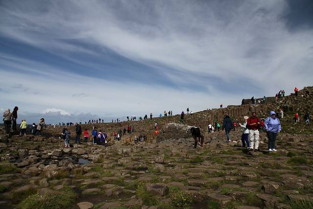 巨人堤道位于北爱尔兰贝尔法斯特西北约80公里处大西洋海岸,是由总计约4万根六角形石柱组成的8公里海岸。石柱连绵有序,呈阶梯状延伸入海。 巨人堤道被认为是由6000万年前太古时代火山喷发后熔岩冷却凝固而形成的。巨人堤道及堤道海岸(Giant's Causeway and Causeway Coast)1986年被列为世界自然遗产。