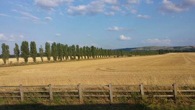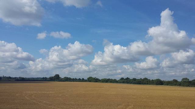 8月,伦敦周边的乡间这样的风景随处可见,是麦田吗?大块的云低得可以投影到田间,一路拍了无数张这样的照片。
