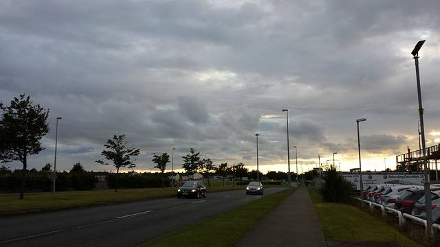当晚我们住在都柏林郊区,有一个挺大的超市离酒店有段距离。因为是最后一晚,大家都想去再采购些可以带回的物品,只是那实在是个太普通的生活超市。回来的路上,晚霞很耀眼,晚上9点半天还没有完全黑。