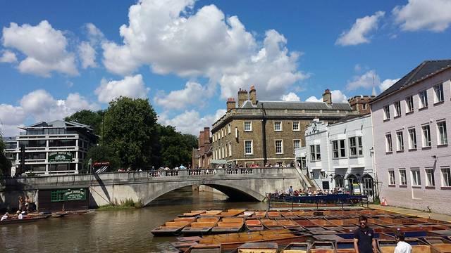 剑桥大学(University of Cambridge)位于伦敦北面50哩以外的剑桥镇。小镇有一条河流穿过,称为“剑河”(又译“康河”)。剑河两岸风景秀丽,河上架设着许多设计精巧,造型美观的桥梁,其中以数学桥、格蕾桥和叹息桥最为著名。剑桥大学没有指定的校园、围墙、校牌,学院、研究所、图书馆和实验室大多建在剑河两岸。
