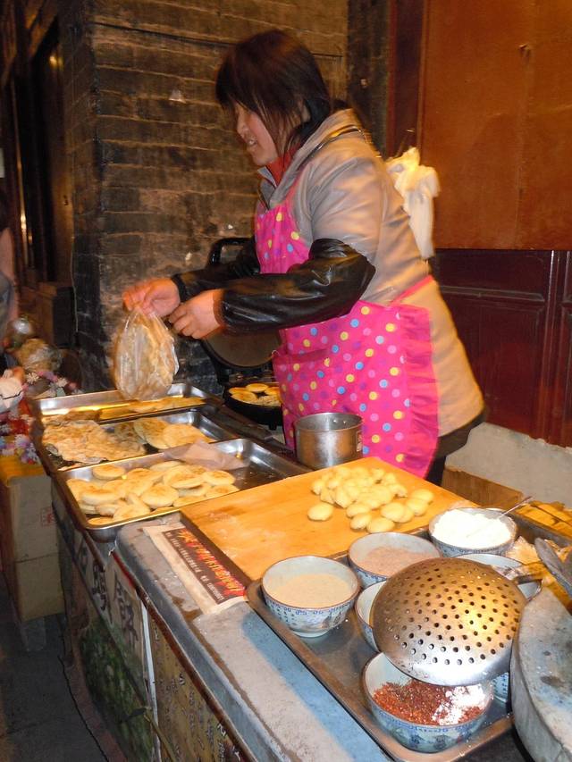 山西的美食都与面,醋离不开的,到了平遥你可以品尝到当地特色的口味。推荐桥面碗托,莜面栲栳栳,莜面河捞,豌豆面踢尖,豆面河捞,炒不烂子,炒饼,油糕,羊杂汤等。碗托选择凉拌着吃,也可以炒着吃。莜面是个耐饥食品,所以要趁热吃,热的时候很软和,栲栳栳通常用羊肉或者牛肉臊子伴着吃,也可以跟蔬菜等凉调菜伴着吃,不过蒸好后稍微放凉了再炒着吃,口感更好。豆面都是打卤的(有踢尖有河捞等)。油糕是用粟米做的,刚炸出来的外脆里糯,不过不好消化,肠胃不好的人,少吃,尤其是天凉的时候。羊杂汤由羊杂碎和土豆粉做成。喜欢面食类的朋友不妨试试。(提醒一下,平遥人都是吃辣的,所以如果不吃辣的话一定要在点菜前说清楚,否则每样菜都会是辣味的)