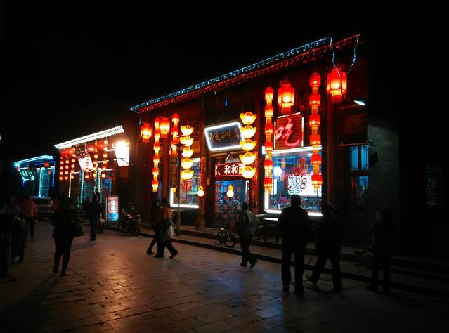 平遥古城街道很热闹(太商业化),尤其是明清一条街,周末和节假日更是,所以喜欢感受古文化还是不要在节假日去。夜景很不错,晚上逛别有一番韵味。