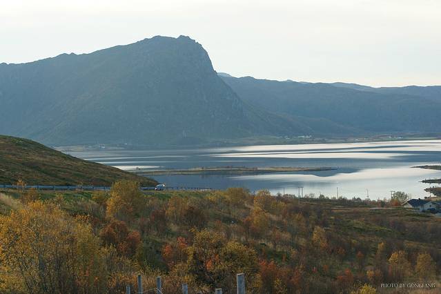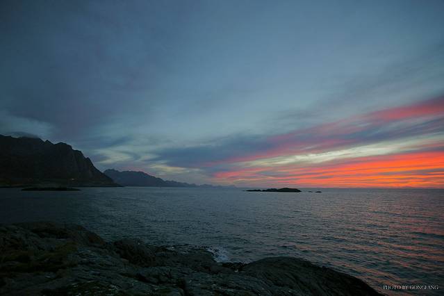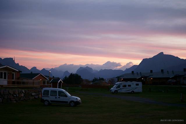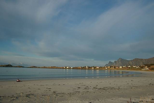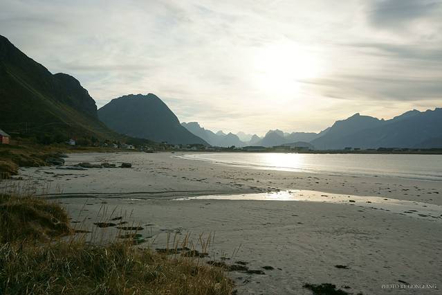 岛上有很多类似的白沙滩,只不过这个最大。但是峡湾的开口方向是北面,东西两个方向被阻挡,日落和日出都有些遮挡。如果喜欢拍照的记得早点开车出去选好位置,lofoten岛上最美的是日落。