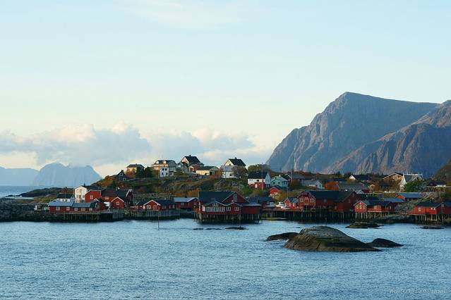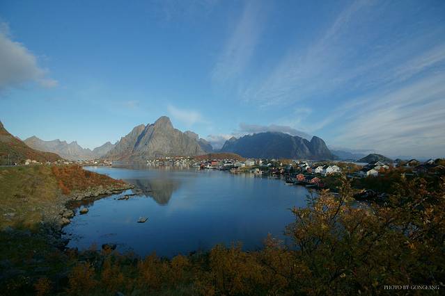 Lofoten群岛由东湾岛、西湾岛、Flakstadoy以及moskenesoy这几座主要岛屿组成,群岛位于北极圈,岛屿边缘犹如齿状分布,峡湾虽小,但是都有着风景如画的渔村和牧场。