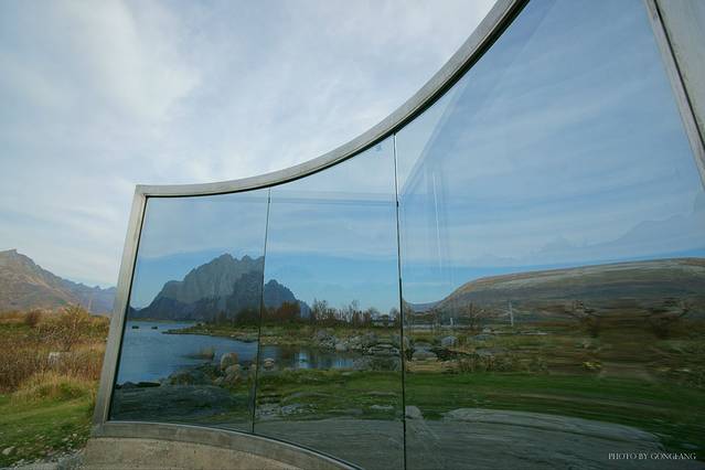 Lyngværet-Svolvaer的路上有这面镜子,因为之前有网友拍过,但是没有路标很难找,记住看到路边一个类似玻璃厕所的正方形东西就是了。