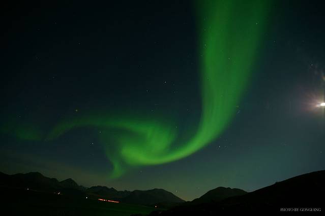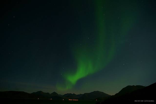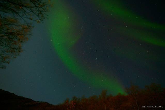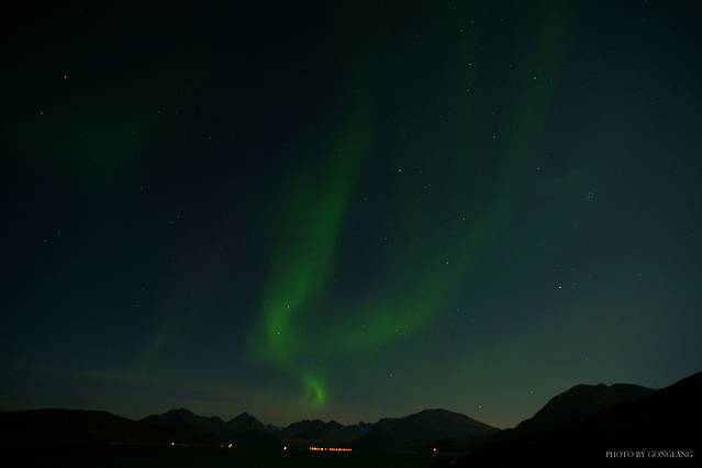 晚上我们报了一家当地最好的极光团:www.arcticexplorers.no,一车七个人四次驻车观测,三次清晰目击。我们有过参团和自己寻找极光经历之后,比较如下,Tromso位于在极光爆发带的中心位置,同样看到极光,但是Tromso极光可以就在头顶近在身侧,更加大而清晰,Tromso绝对胜出。还需不需要参团呢?个人觉得完全不需要,可以看到极光的地点大都是西北出海口的峡湾位置,我们的团也是在这几个点追击极光。租车自己可以控制地点时间,多穿点衣服,在车里喝茶等极光,有了就出来狂拍。报团的话时间就不由你了,我们的团一直折腾到2点,领队请我们野外吃个饭,一群人穿着雪地服带着头灯坐在长满植被的沙滩上吃方便面,几个阿拉伯团友很激动,聊了人生后,才满意得回去睡觉。