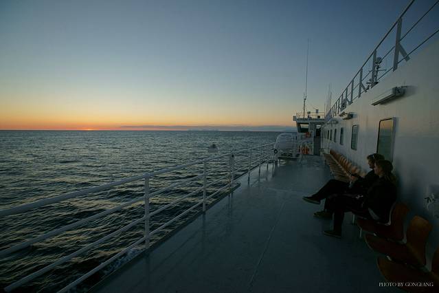 下午轮渡4个小时,可以在船上吃晚饭,不然晚上上岛就没吃的,超市关门早。