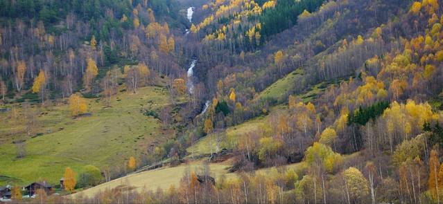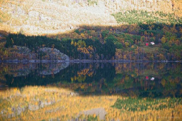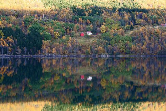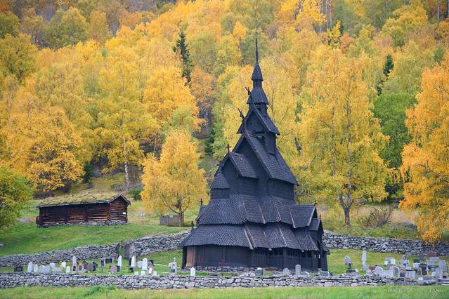 因为寻找松恩峡湾最古老的木板教堂Urnes stave church,错过轮渡,绕走了一段金色的乡间小路,游走在峡湾和挪威森林之间,北欧独特的积木房子零星散布,我想那才是真正的挪威秋色