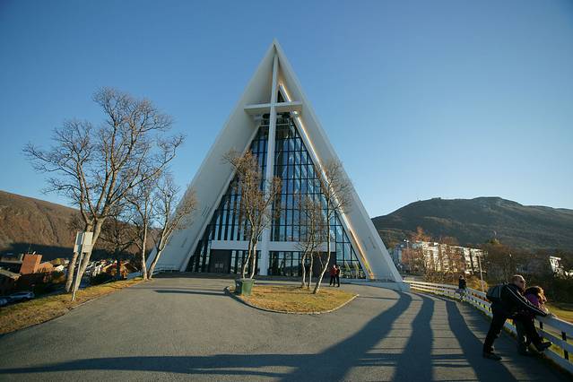 Leknes飞Tromso 。宿(Clarion Collection Hotel With Add:Sjogata 35-37 Tromso 9291)。这里的温度已经接近零度,从秋天赶到了冬天。酒店出来散漫地逛着午后的街道,乘26路公交,到Fjellheisen缆车至斯托斯坦恩山顶可以欣赏整个城市全景,8月以后开放至22:00,据说冬日天气晴朗的夜晚可以看见北极光在笼罩整个城市上空。山顶有个餐厅,那是个不错的选择。山下就是北极大教堂。
