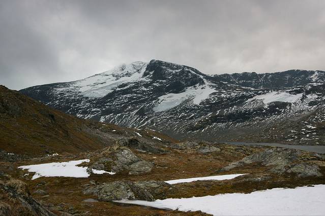 之后误闯高原路线Rv55,平均海拔1434米。挪威最高的几个山峰(包括最高峰Galdhopiggen海拔2469米)和最大的冰川,一路视野非常开阔,风景很好。