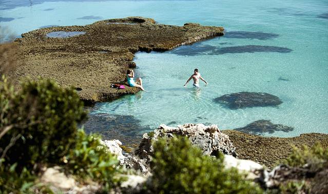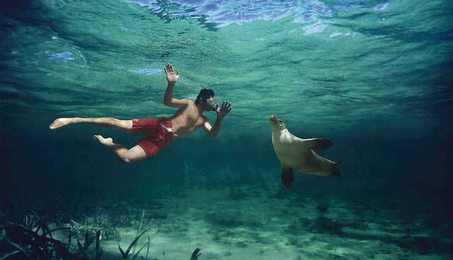 艾尔半岛(Eyre Peninsula)的拜尔得湾(Baird Bay)是世界上为数不多、可以与两种非凡的哺乳动物(海豚和澳大利亚海狮)一起畅游的地方。通气管、面罩、紧身潜水衣以及你所需要的全部装备都会提供,让你可以在不深而宁静的水域中享受着与这些哺乳动物一起共泳的快乐,在互动中可以看到它们自然野生状态下的样子。