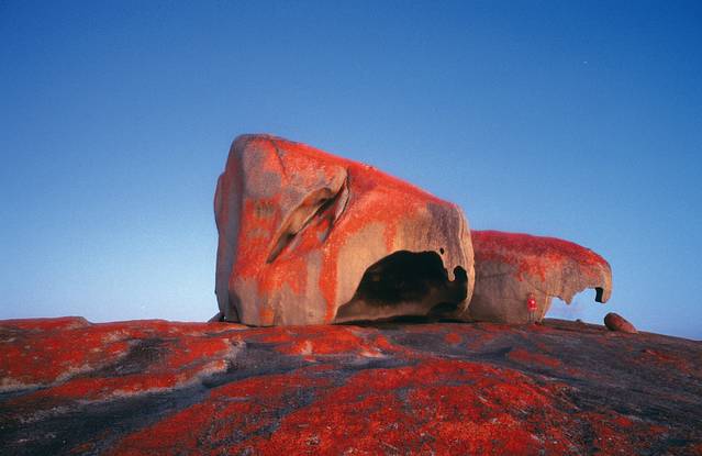 神奇岩石(Remarkable Rocks)是袋鼠岛上名副其实的天然奇观。看似摇摇欲坠的花岗岩石高高耸立在南大洋的惊涛骇浪之上,在海风海水的鬼斧神工般的雕琢下,块块巨石造型千奇百怪,令人赞叹不已。它们奇特、扭曲的外形是数千年的风吹雨打和海浪冲刷的杰作,其表面颜色更在一天当中因时而变,五光十色,绚烂多姿,大自然的曼妙艺术在此展露无疑,这里也是岛上游人拍照留念最多的自然奇观之一。