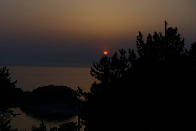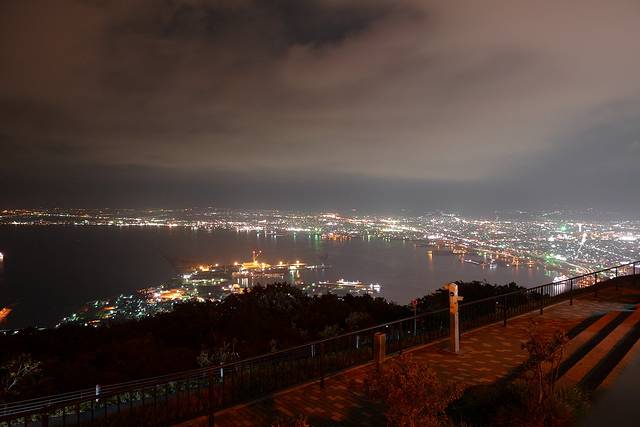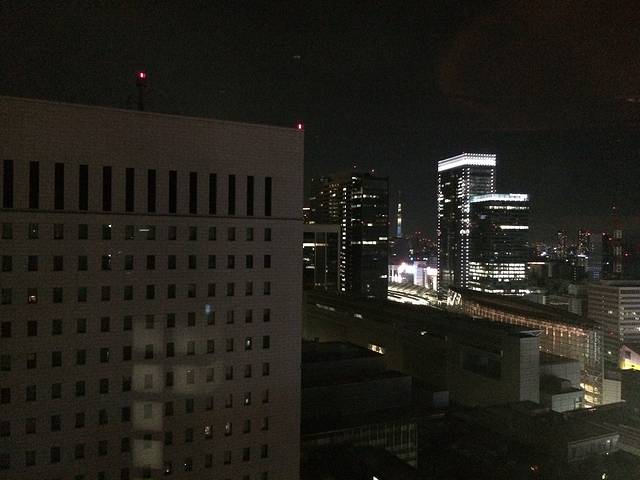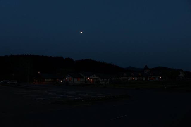 从房间的窗户往外看,就是富士山与河口湖的景色。虽然西北边已经放晴了,但晚上富士山的云还是很厚,依稀能看到半山腰的影子