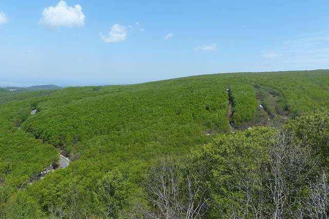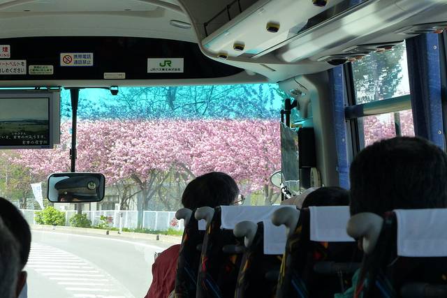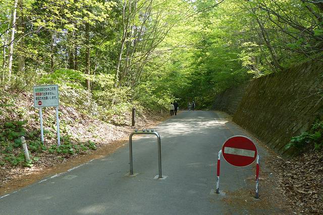 青森通往八甲田的山路上,漂亮的樱花大道,可惜在车上不容易拍出来