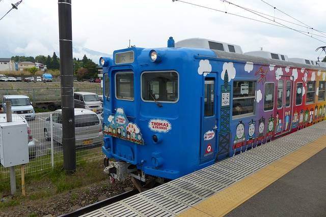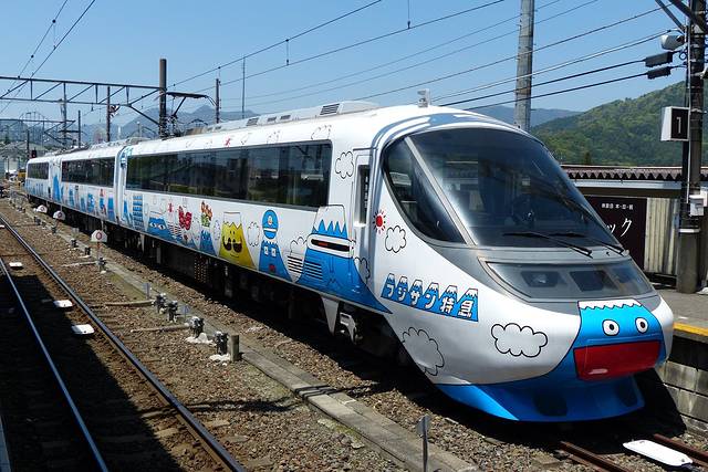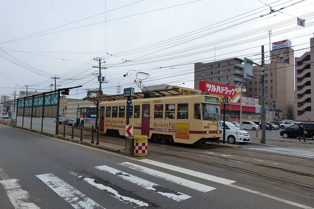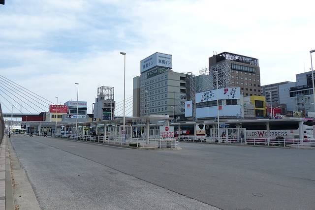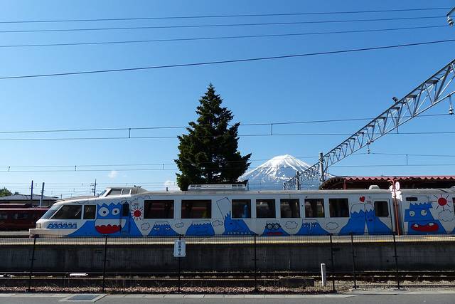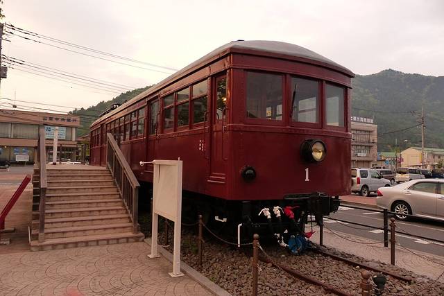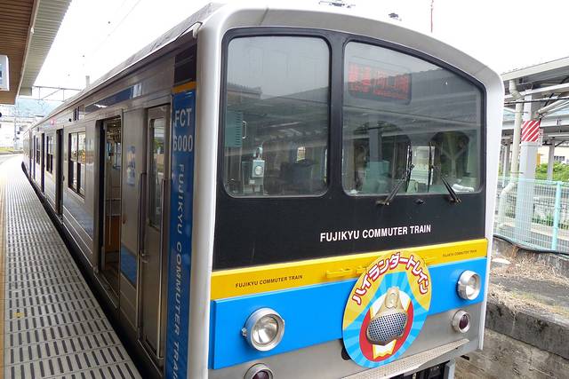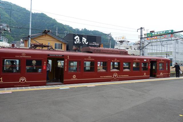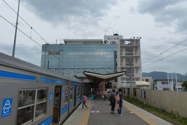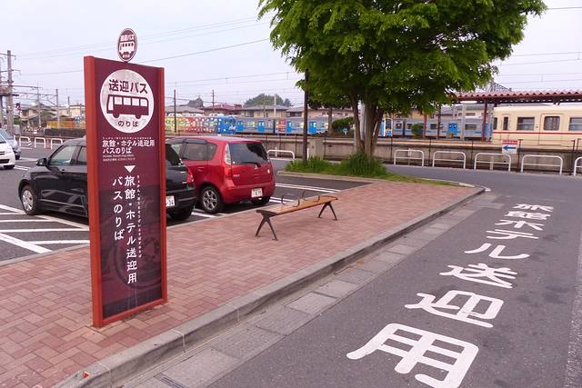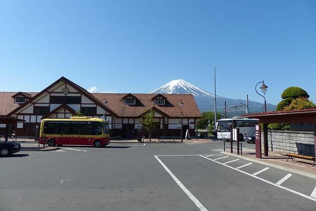观光中心对面的富士急电车,酒店巴士停车位就在后面