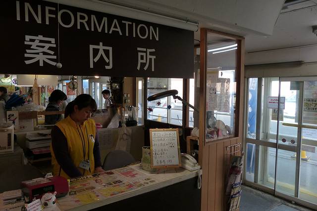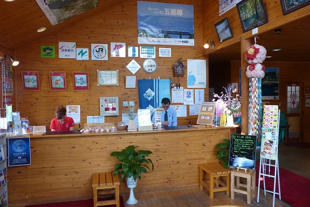 出车站右手边,就是观光中心,可以拿各种地图、介绍材料和优惠券。朱在河口湖的也可以拜托工作人员联系酒店接送。