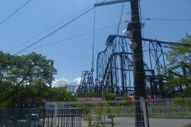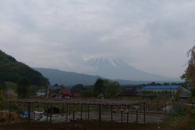 下车后,往富士山方向看,一直藏在阴云中的富士山居然露出了半个身子