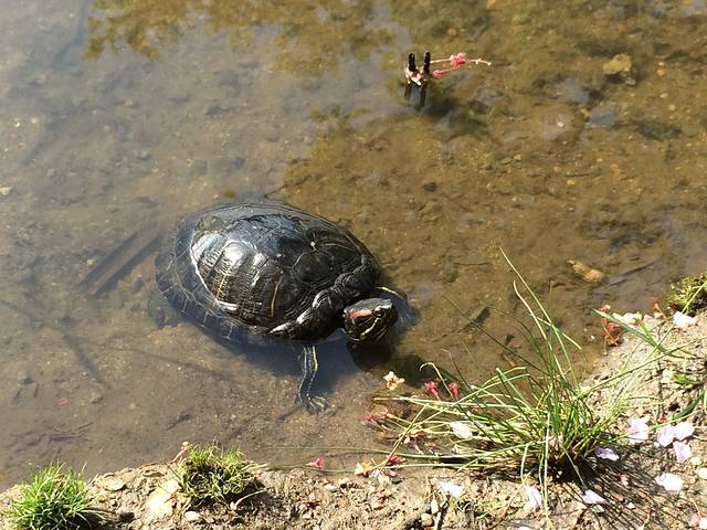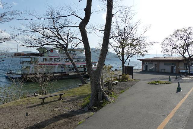 沿着湖顺时针走,第一片芝樱开的不是很好,有些稀疏了