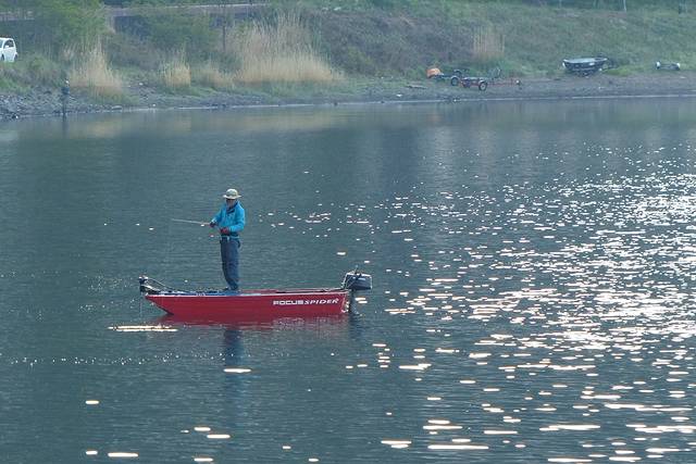 四点多拍照片的时候,就一直注意到湖中心有一叶孤舟,应该就是这位仁兄了