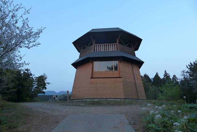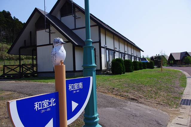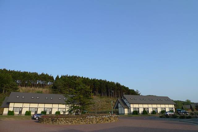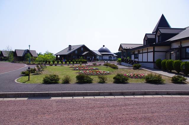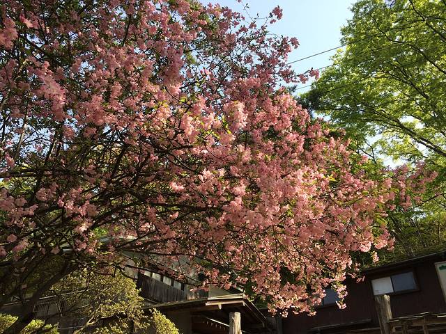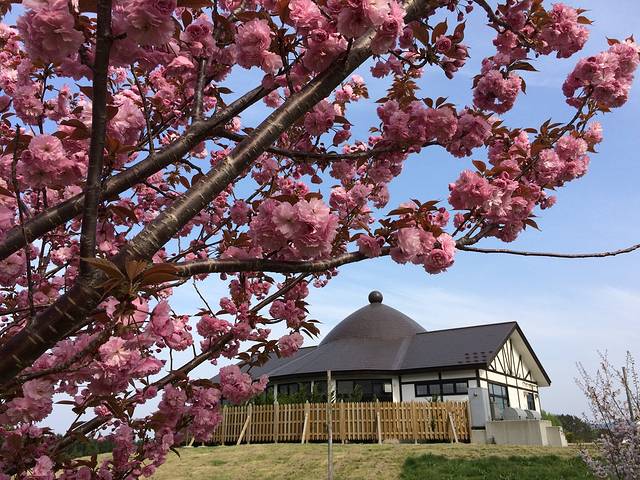 AWONE白神十二湖度假村内的樱花,后面那个造型奇特的是温泉浴场,真有寓意啊~