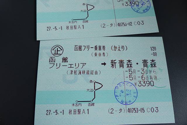 通票和大路程的指定席,青森出发人比较多,指定席票的上车时候被收走了。十和田出发时人少,司机也就没看指定席票。