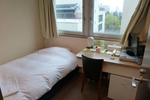 酒店的位置,在眺望富士山的一排酒店中算偏东的,看到的富士山脚略有遮挡,不过也有一种层次美。酒店分A、B两栋,A栋7层,B栋4层,共38间客房。多数为和式房间,都是能看到富士山的南侧房。但也有几间和洋室客房在北侧。所以要看富士山,一定要选和式房间。