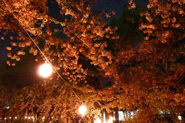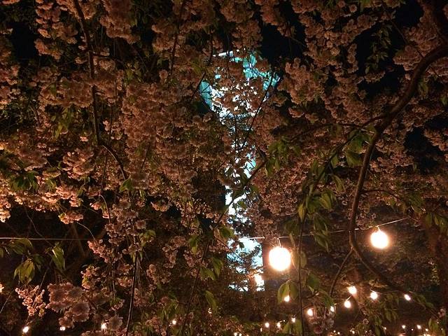 函馆五陵郭的夜樱,朦朦胧胧看不清花谢了多少感觉还挺美的