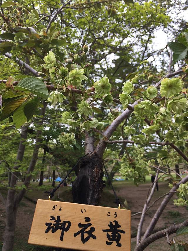 最别致的一株:御衣黄,绿色的樱花,种植在弘前城内