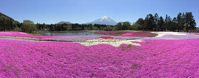 富士山脚下的本栖湖,每年四月底到五月底,都会举行富士芝樱祭,吸引了无数游人,可以说是关东地区的第二个赏樱高峰期。