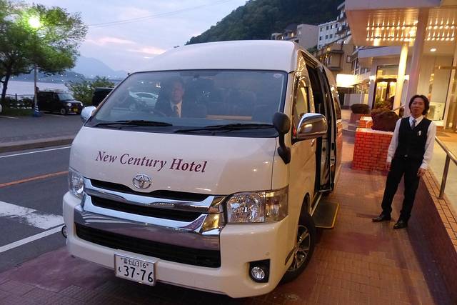 酒店提供到河口湖车站的接送服务,需要电话预约。不会日语也没关系,到了河口湖车站后,可以到旁边的观光服务中心拜托工作人员代为联系,观光中心18:30闭门,所以不要到太晚,不过一般预订会席晚餐的,肯定也要18:30前到了。电话联络后,大概十分钟酒店的车就会来,开到酒店约5分钟车程。次日早上的送行从8:30开始,没半小时发一次车,无需预约,到点到大堂等候即可。晚上接站的大叔非常热情健谈,据他自己说来当司机前在企业工作,还被派驻到广州3年,对中国很多地方都很熟悉。