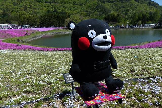 本来以为是公园的布置,后来发现萌熊属于一个有爱的老爷爷,一定是熊本人吧,居然带着萌熊一起来赏樱,还为它准备了板凳拍照,真是热爱故乡的九州男儿