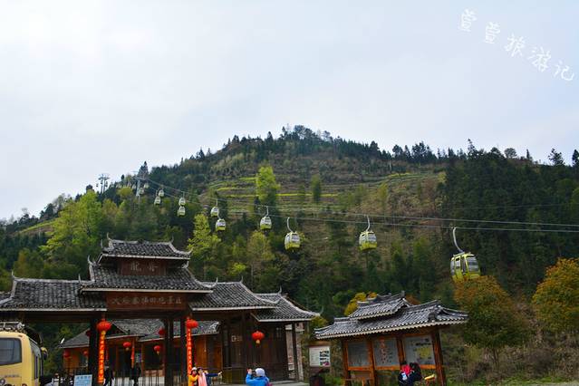 从售票处开车要20分钟才到大寨观景区的门口。从这里开始就要步行了。也可以坐缆车。但是我订的客栈离下缆车的地方很远。而且我觉得本来就是体验梯田的,坐缆车就没必要了。