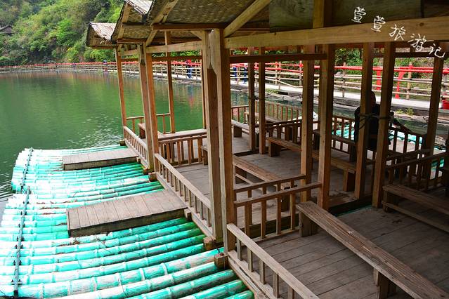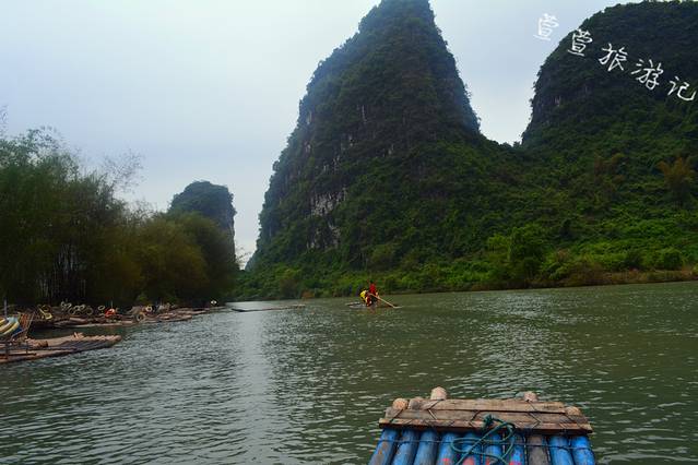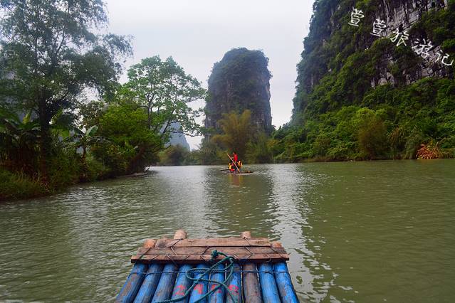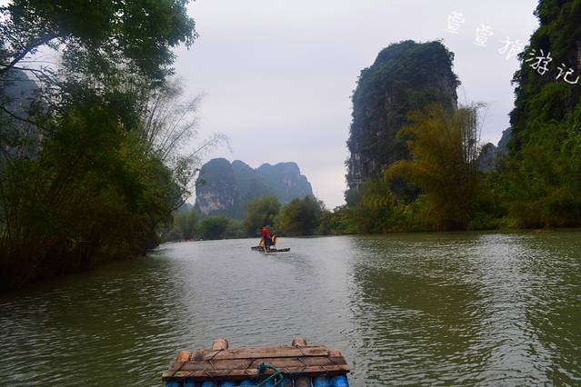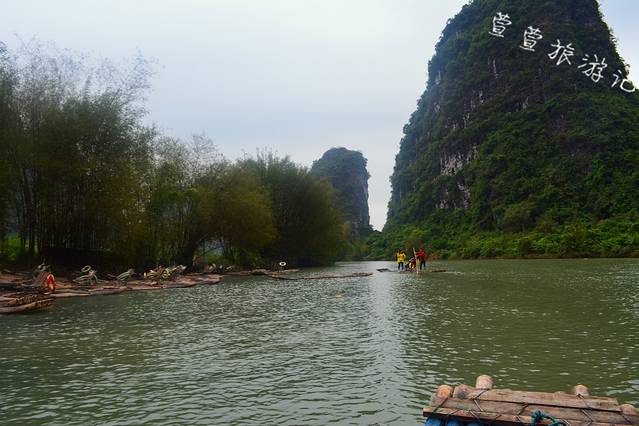 一上竹筏,筏工就让我们穿救生衣,以为万一。这里的水可比遇龙河的深多了。