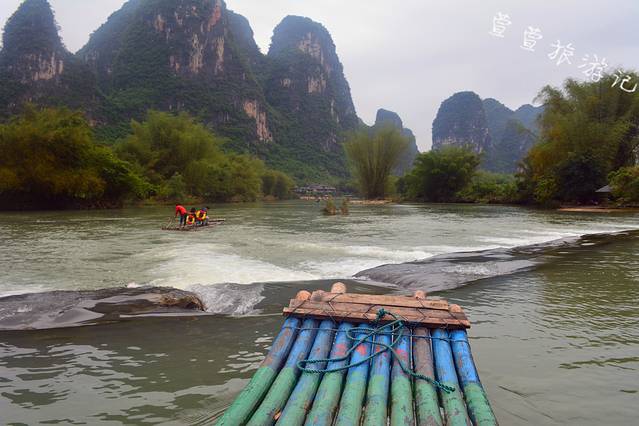 开始上竹筏,可能是因为水比遇龙河的急,我感觉竹筏很颠簸。
