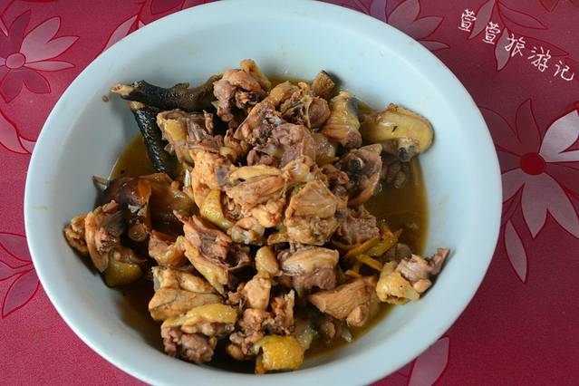 新鲜的鸡肉塞进现砍的竹筒里,只放了一点盐、胡椒和生姜,放上土灶,鲜嫩的鸡肉吸收了竹筒的清香,清单的调味更是凸显了这种鲜香!土鸡以前倒是吃过不少,还从没吃到过这么美味的!想是这样的风景让鸡的心情也每天都无比的好的缘故吧!一顿美餐,伴着周围仙境一样的风景,真是眼、口尽饱!