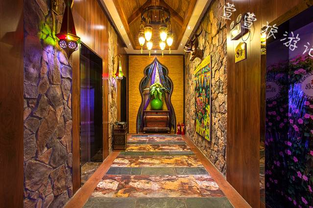 走廊背景音乐是流行乐,与东南亚风情碰撞出差异化效果,让人耳目一新