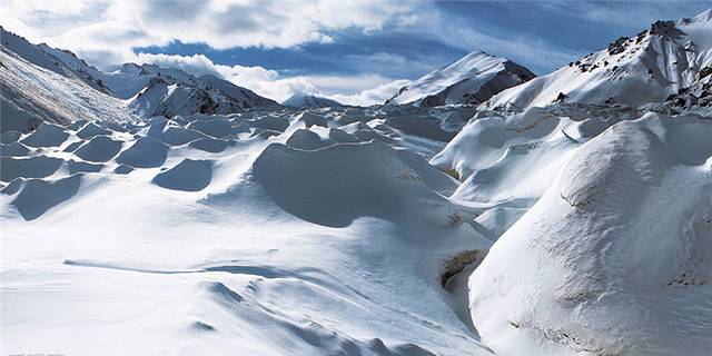 雪峰终年皑皑,直插云霄;百年空净幽幽,无人惊扰
