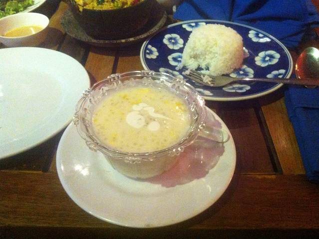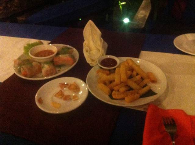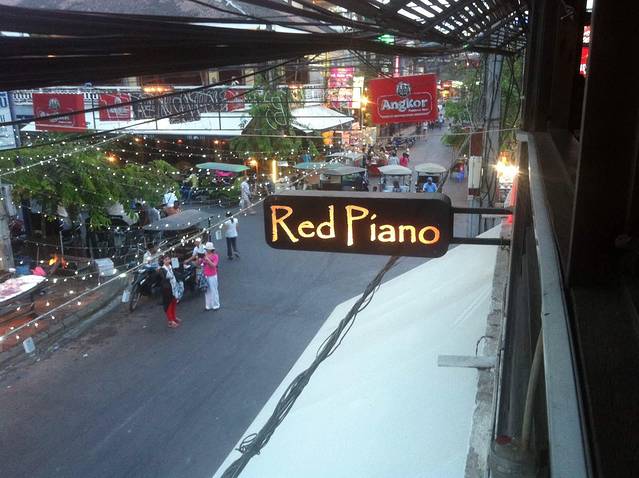 到暹粒的首顿晚餐献给了大名鼎鼎的“红钢琴”,它就在老市场北侧的酒吧街,而且在路口,很好找。几乎每篇游记都提到它,所以我们也算是慕名而来。但是吃完觉得有点小失望,因为在我们后来在暹粒吃的所有餐厅中,“红钢琴”绝对是排在后几位的。并不是因为它味道不好,而是因为性价比不高,味道中规中矩没特点,价格却不便宜。从我们后几天的体验,其实暹粒有很多小餐厅味道要更好。