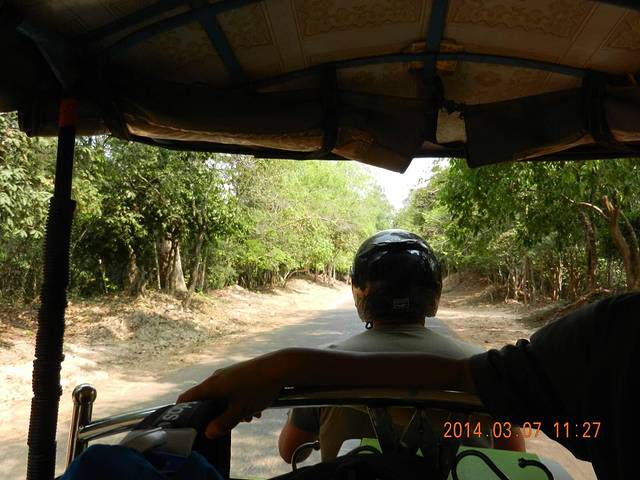 一出机场就看见有人举着接机牌,是我预定的tutu车司机来接机了。我预定的司机叫Sam,接机的是他的朋友Lan(发音是这样的)。Lan开着tutu车带我们去和Sam会面。我们交流了一下行程:共5天,其中一天去高布斯滨、崩密列和罗洛士群坐汽车,其余4天坐tutu,但有一天去格罗姆山和西池比较远。Sam给我们报价130刀,还说今天接机免费。根据网上了解这个价格还可以,就成交了。