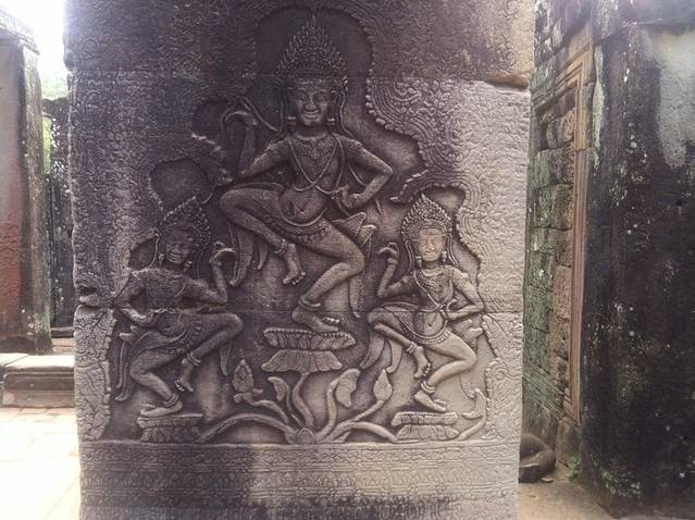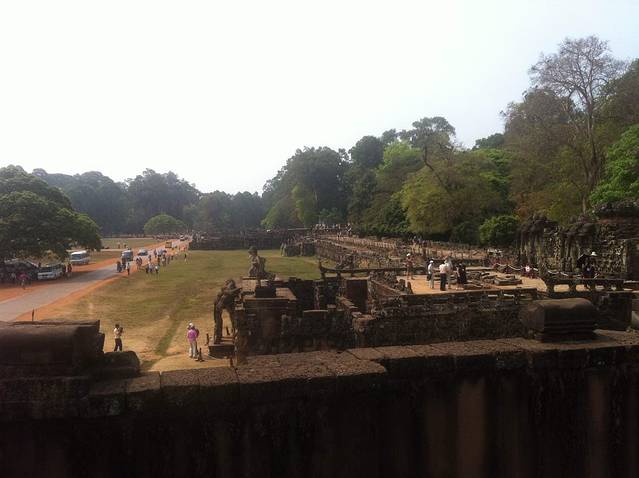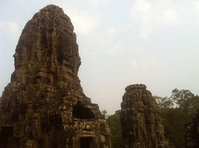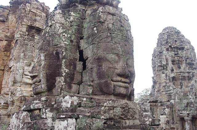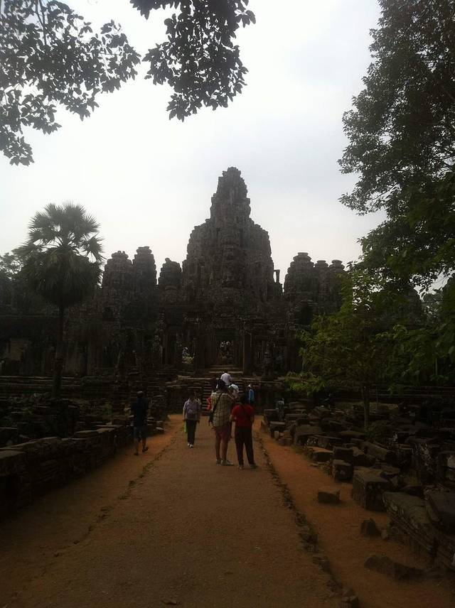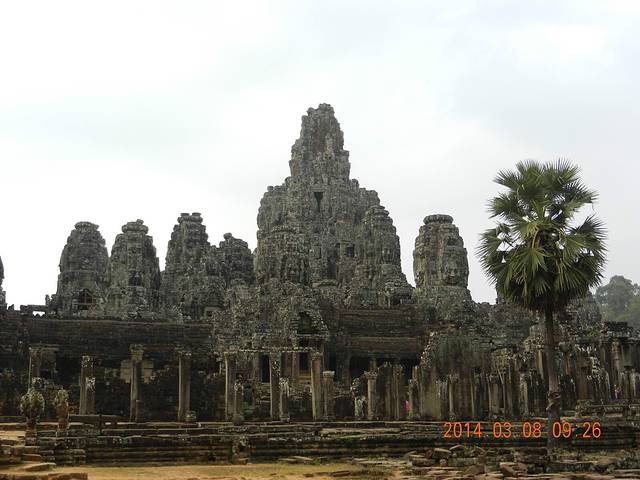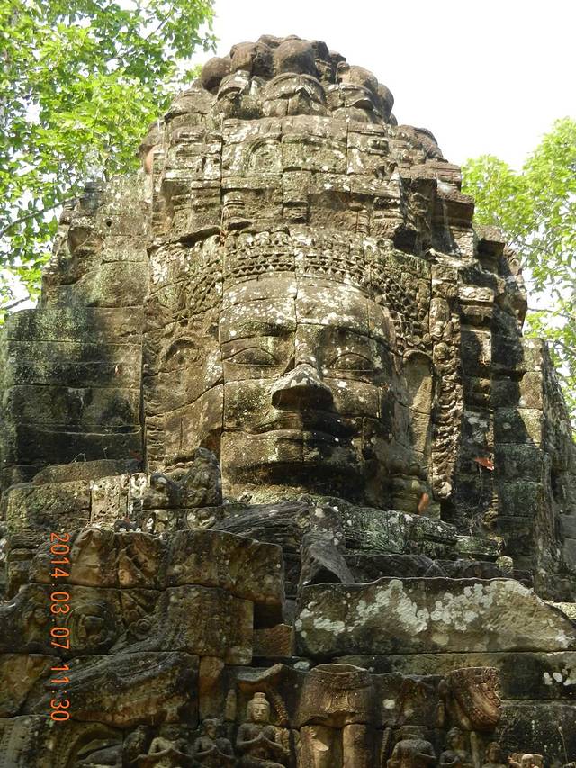 巴戎寺虽不大但很有看头,无数个微笑的佛像给人的震憾无法比拟,第一围廊的浮雕也比吴哥寺更有生活的气息。不过由于寺庙较小,又是旅游团必游景点,所以一定要在上午9点前参观,不然你就看人头吧