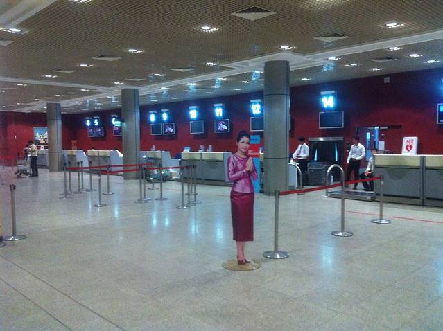 虽然飞机晚点2个小时,但暹粒比北京晚一小时,所以五点多还不算晚。暹粒机场不大,建筑很有特点。入关边检果然被敲竹杠,直接无视,say:No!结果也顺利通过。