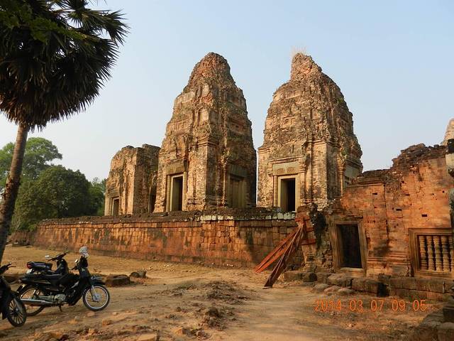 从崩密列出来沿着6号公路一路向西约一个小时到达罗洛士群。罗洛士群曾经是吴哥王朝的最早的都城,后来才迁址去现在的吴哥城。其中罗莱寺和神牛寺都很小很简单,都是砖结构,供奉的是湿婆神。巴空寺规模比较大,由五层平台和中央的须弥山构成。